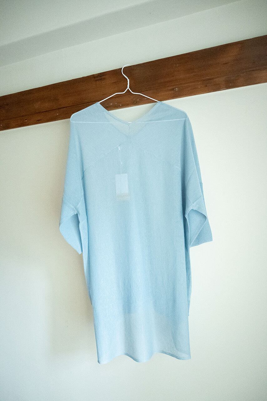 2カラーのご用意です✯ シアー感がたまらない♪さわやかなトップス♪ 麻混なので着心地もすずしいです! ---------- 205LB602/BLU サイズ レーヨン70% ポリエステル24% 麻6% モデル身長157cm