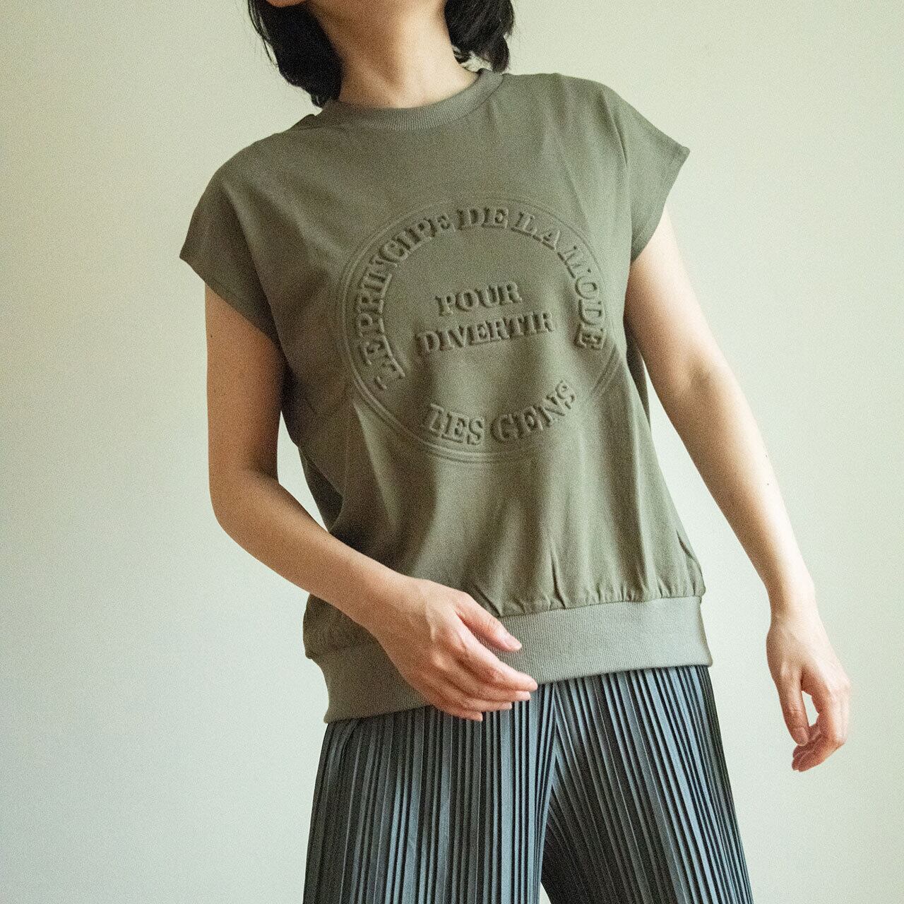 エンボス加工されたロゴがおしゃれなトップス✯ カーキカラーでクールに着こなして♪ ---------- 6160032 サイズ 素材 モデル身長157cm