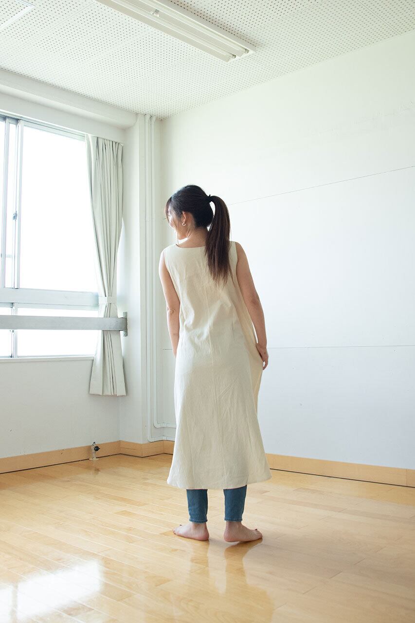 レイヤードスタイルにもいちまいでも着まわせるノーカラーワンピ✯ 動くたびに表情が変わるのがかわいい! 少しだけ透け感があるのでパンツと合わせて着こなして✯ ■素材・成分:綿65% 麻35% --------- モデル身長:163cm 8023541S1