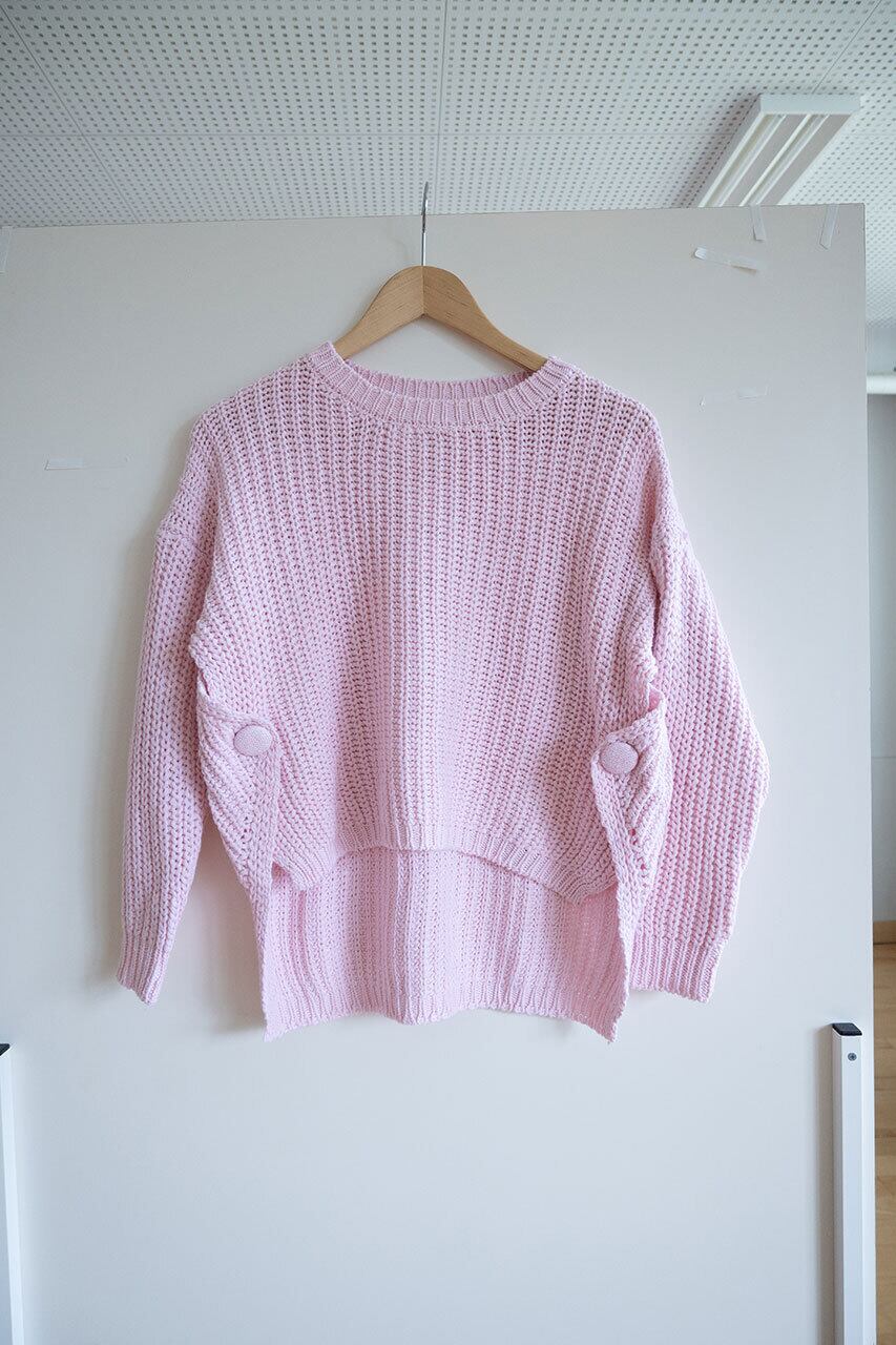 アイスピンクのボタン付きニット✯ 前が少し短くなっているのでハイウエストボトムスとの相性もばつぐんです✯ ---------- 身長163cm 8289601S3