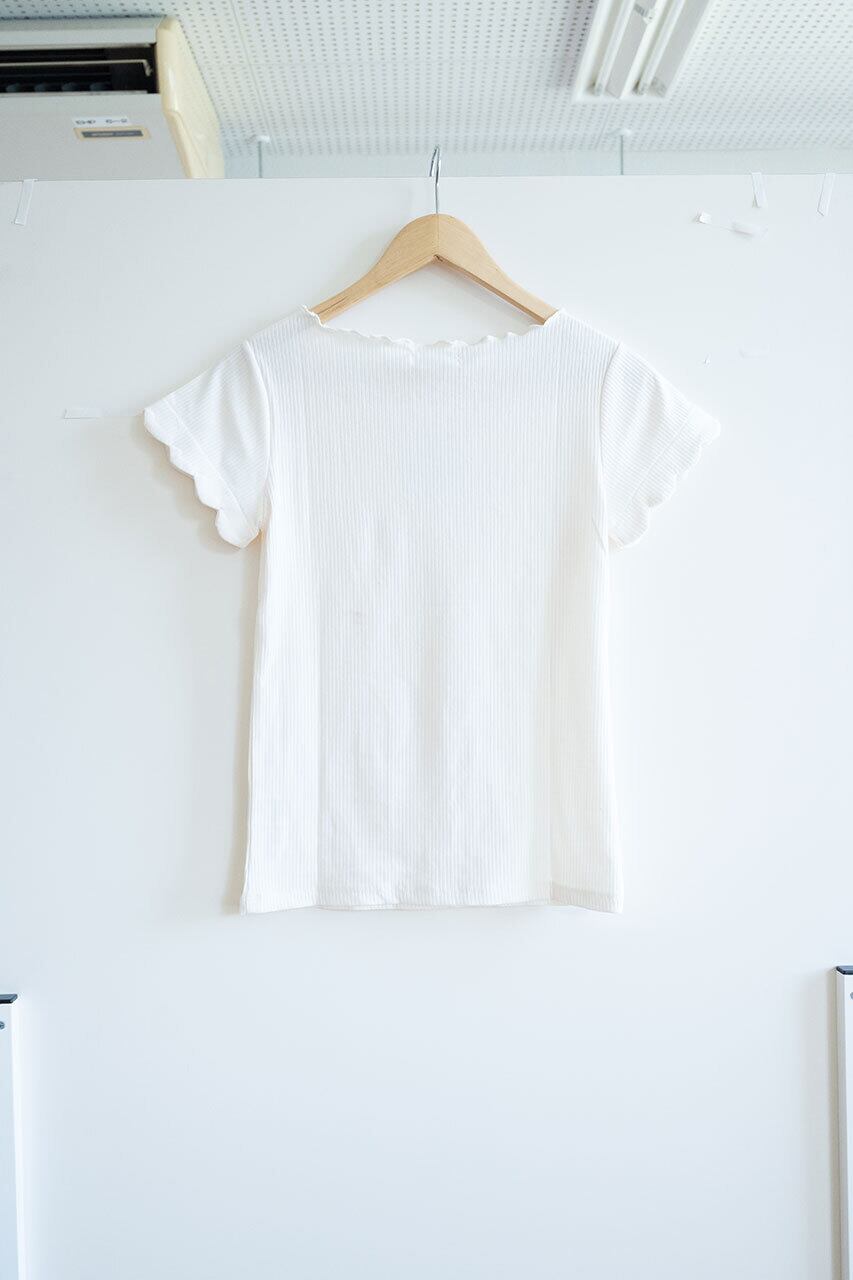 首元と袖のフリルがガーリーな印象のこちらのアイテム✯ スカートにもパンツにも合わせやすい万能選手です! ■素材・成分:ポリエステル 62% コットン 33% ポリウレタン 5% ----------- モデル身長:163cm 7900343S1
