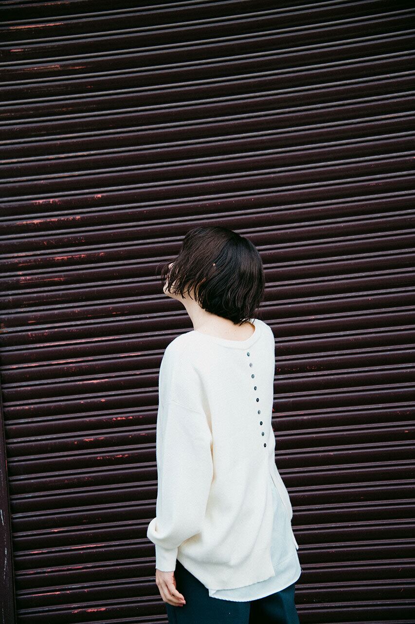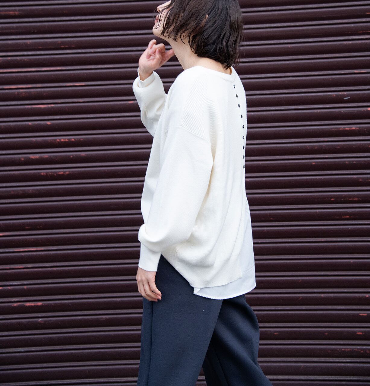 バックスタイルがかわいいレイヤード風ニットソーです✯ お袖もパフスリーブで、シンプルだけどこだわりを感じさせるアイテム♪ インしてもかわいいですよ✯ モデル身長157cm ----------